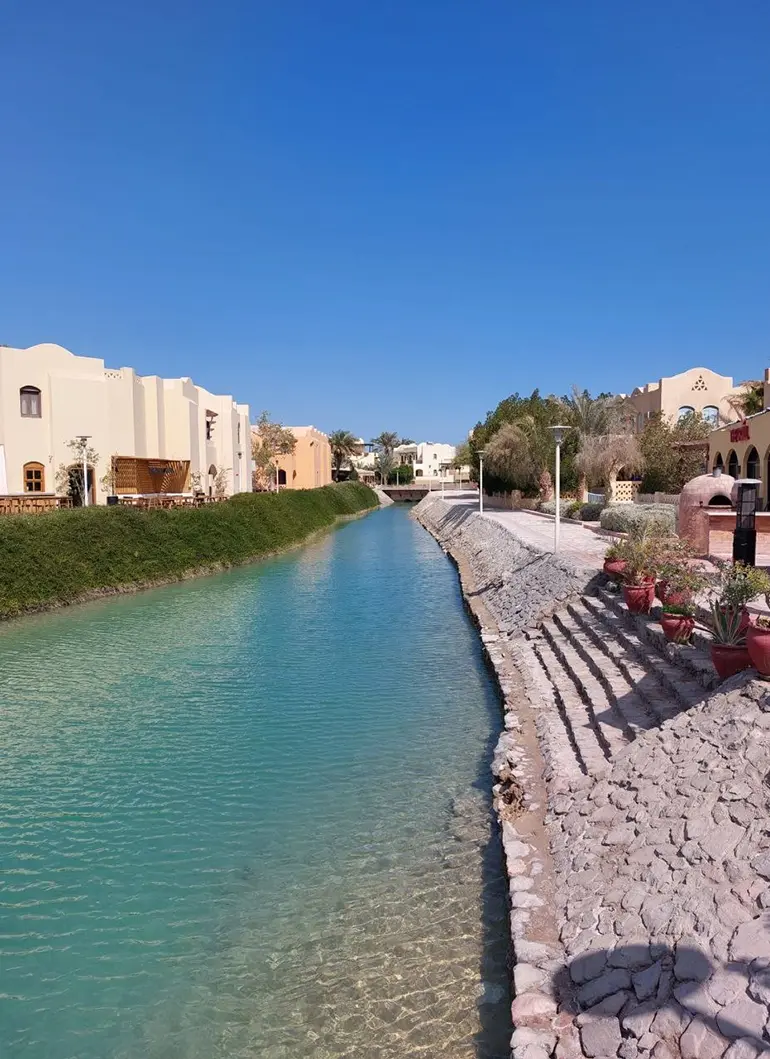 El Gouna wurde in einer Mischung aus traditionellem nubischen Stil und moderner Architektur errichtet. Die Stadt besitzt einen 10 km langen Strand und ist für seine zwar künstlichen, aber wunderschönen und türkisfarbenen Lagunen bekannt.